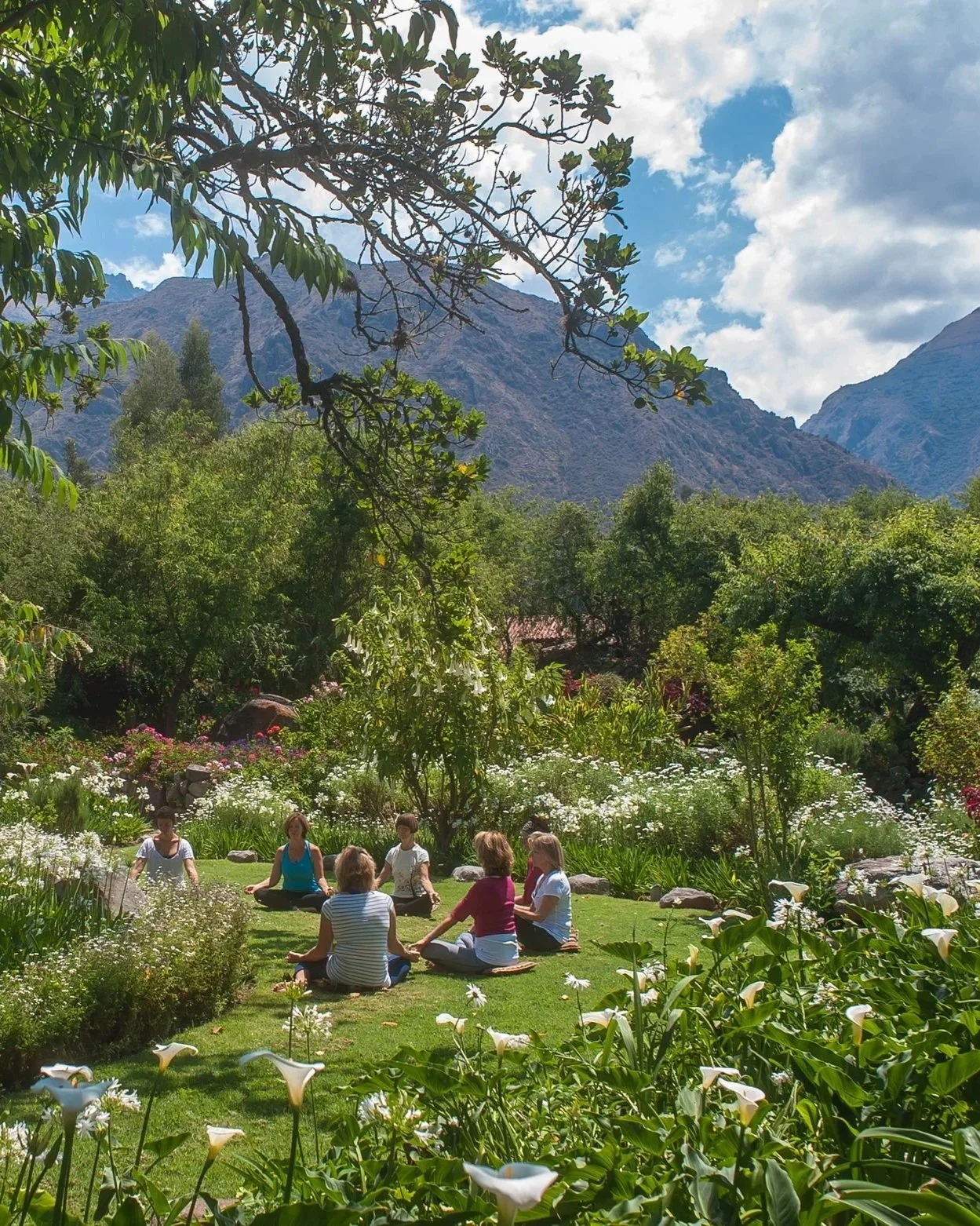 At the heart of Willka T’ika beats the renowned Seven Chakra Gardens, where each sacred space is designed around one of the seven classical energy centers of the body. Symbols, sculptures, and medicinal plants correspond to each chakra, while vibrant flowers bloom in their associated hues, saturating the senses with color and subtle resonance; light, fragrance, and living form converge to offer a gentle field of restoration for mind, body, and soul. In the crown chakra garden, a thousand-year-old lucuma tree stands as a living bridge to the wisdom of the ancient Incan civilization, its grassy canopy offering a natural sanctuary for meditation. Winding paths weave from garden to garden, inviting unhurried presence and contemplative wandering. In the third-eye garden, the Grand Spiral Walk becomes a moving meditation—an embodied ritual of release and alignment with the potent energies of Peru’s Sacred Valley, opening intuition, reflection, and awareness. Here, healing unfolds through direct relationship with the intelligence of Nature: walk, sit, write, paint, or simply rest within the garden that calls to you—each one a living testament to devotion and care.
