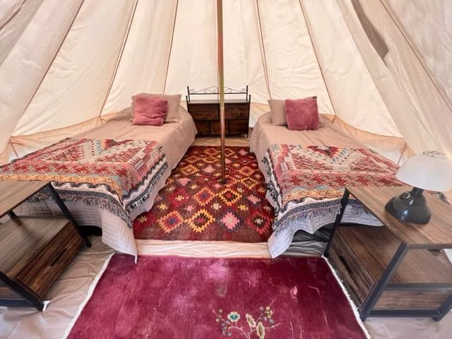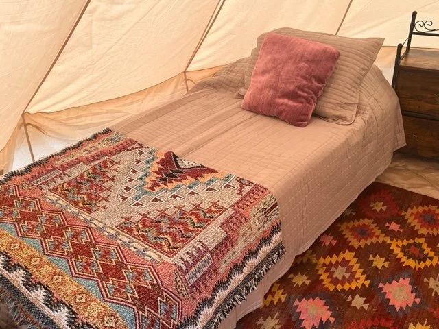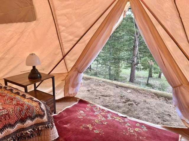 Glamping option at the Starhouse just steps away from the sacred shala. Each tent comes equipped with double beds & linens, LED/solar lights, and dressers. Price is per bed.