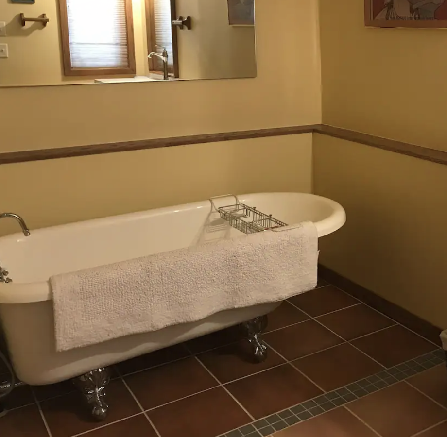 Retreat in an elegant, rustic, cabin with a private room, full bathroom boasting a clawfoot tub, and a 5 minute walk on private retreat land to Starhouse.